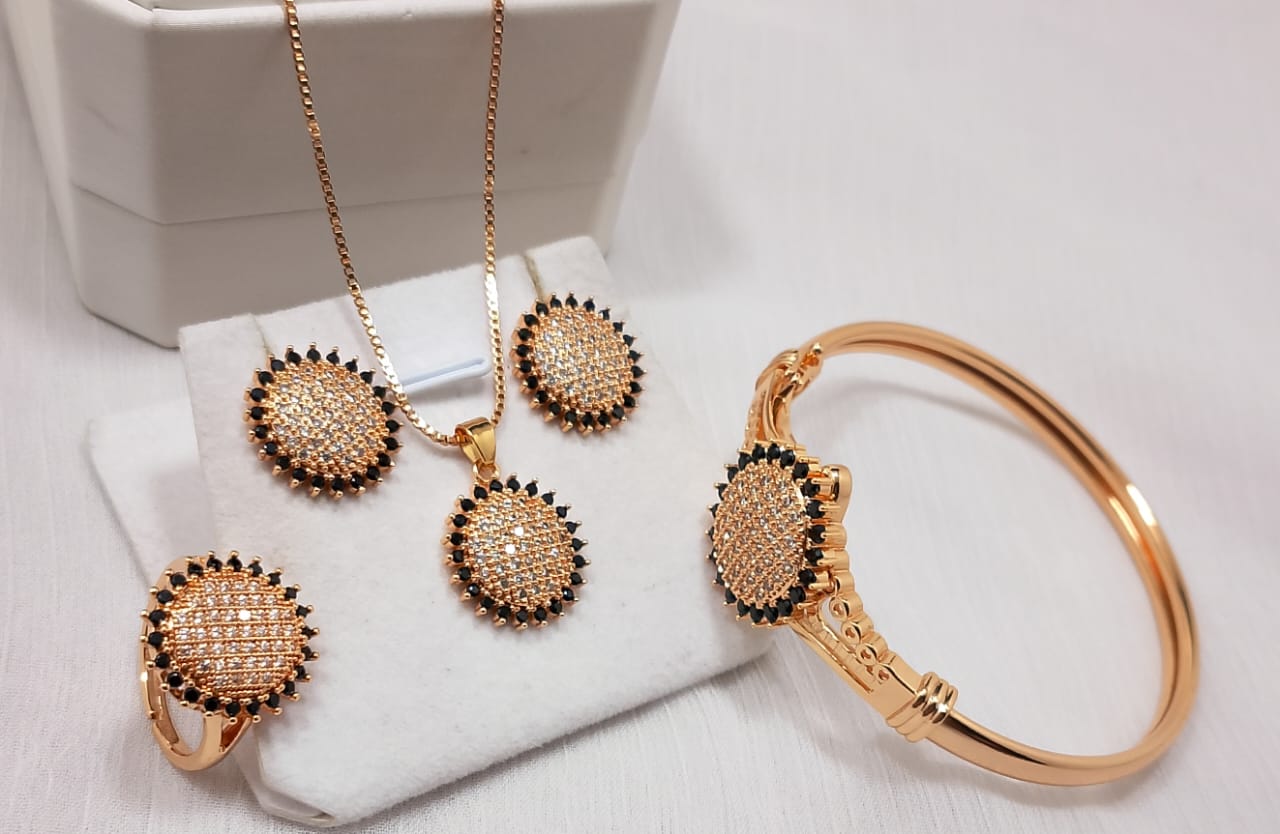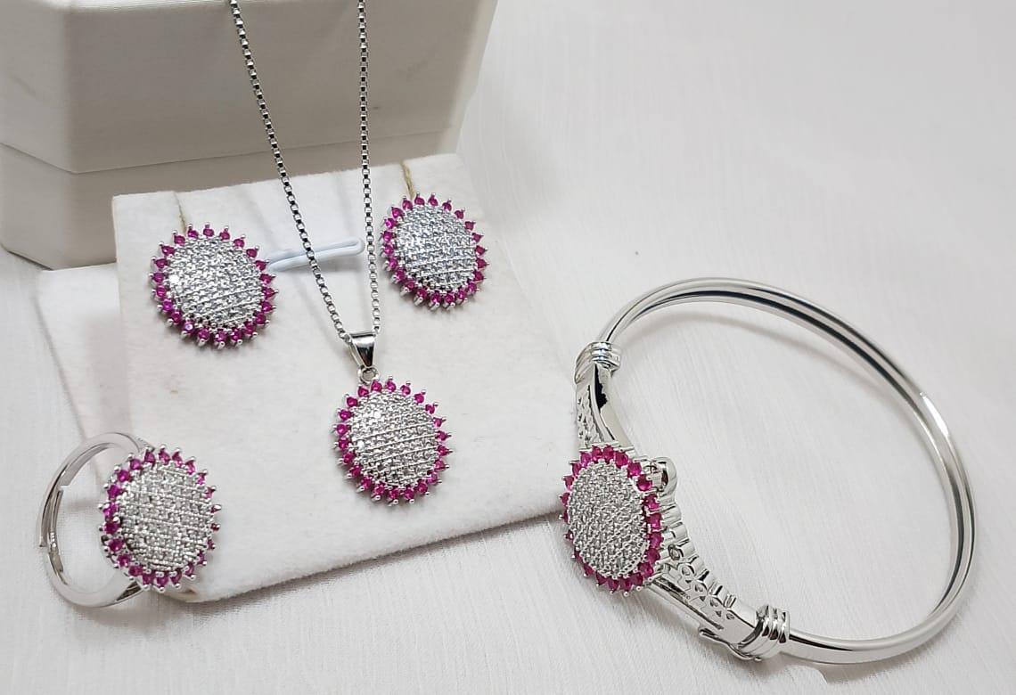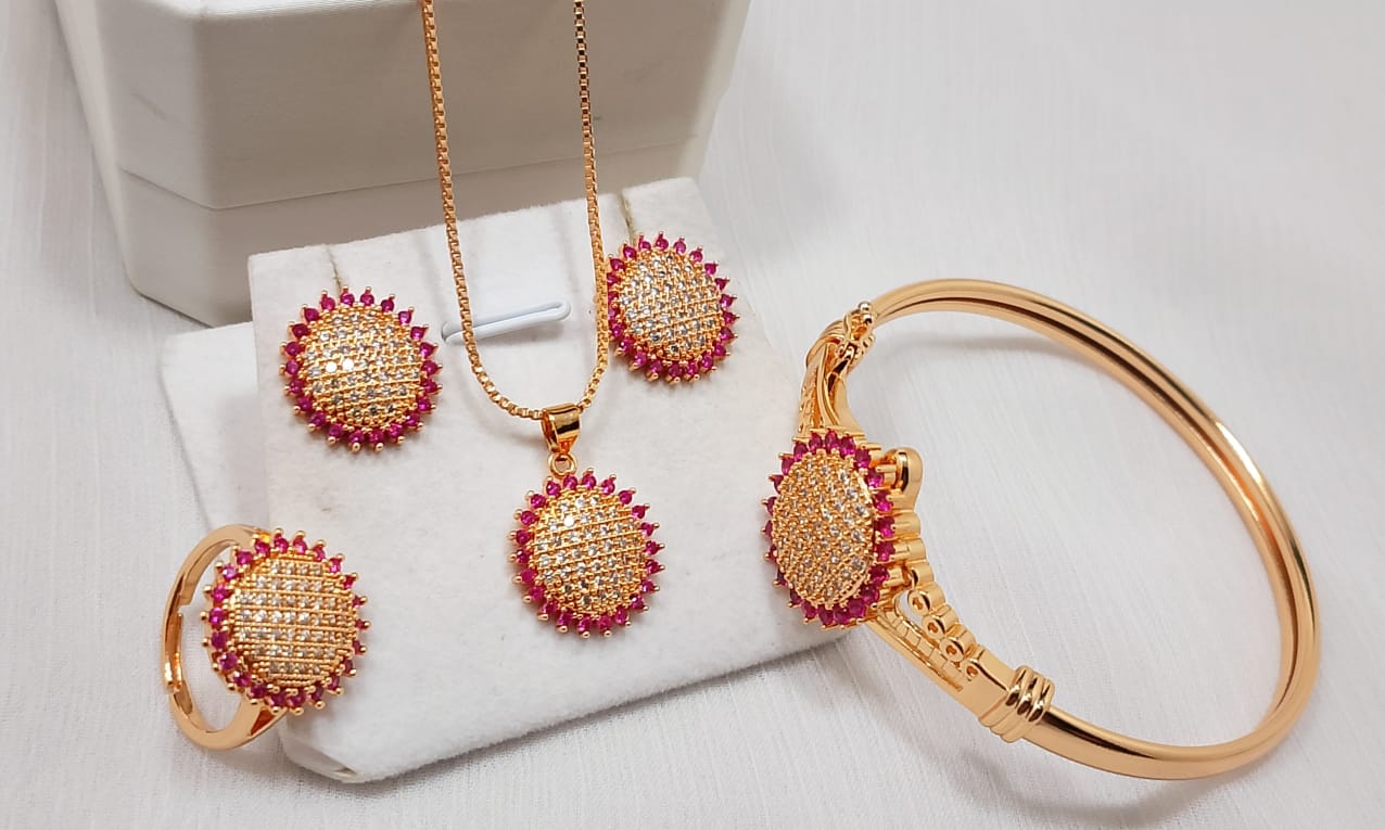 This beautiful locket set comes with one pair of tops, one adjustable ring, one adjustable kara, one chain with locket. Comes in varieties of colours. Best for daily use. Top finishing qualtiy.
